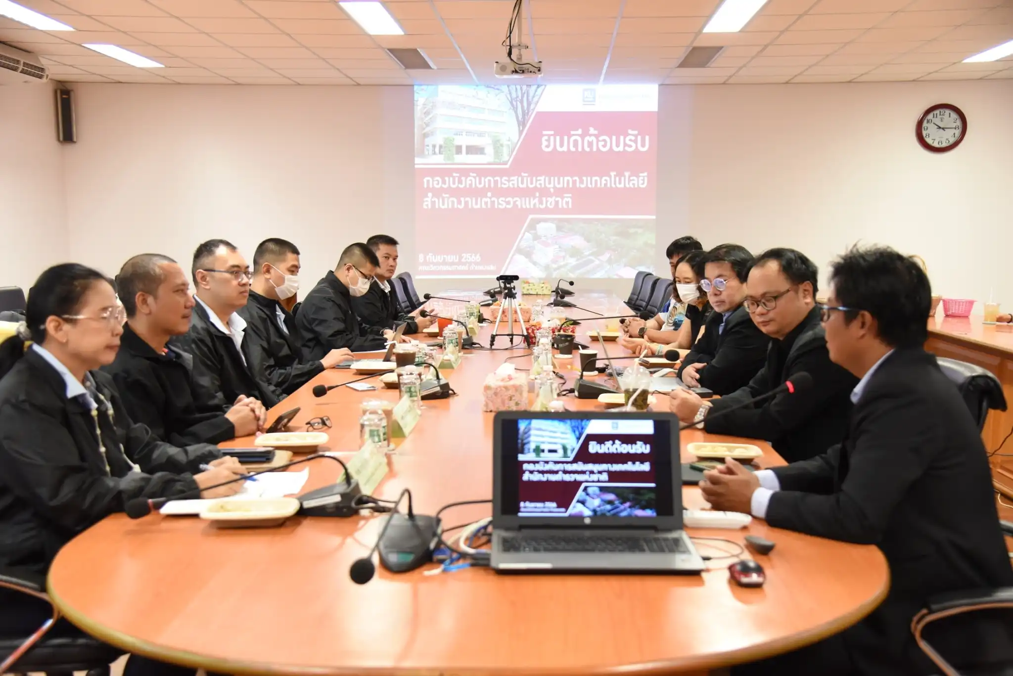 วันนี้ (๘ ก.ย.๖๖) เวลา ๑๐.๐๐ น. พ.ต.อ.หญิง สุภัทรา ชัยรัตน์ ผกก.กลุ่มงานวิจัยและพัฒนานวัตกรรมทางเทคโนโลยีพร้อมด้วยข้าราชการตำรวจในสังกัด ได้เข้าพบ รองศาสตราจารย์ ดร.สมชาย ดอนเจดีย์ รองคณบดีฝ่ายบริหาร คณะวิศวกรรมศาสตร์ กำแพงแสน และ ผู้ช่วยศาสตราจารย์ ดร.หทัยเทพ วงศ์สุวรรณ รองคณบดีฝ่ายวิชาการ คณะวิศวกรรมศาสตร์ กำแพงแสน พร้อมคณะ พร้อมเยี่ยมชมศึกษาดูผลงานและงานวิจัยที่เกี่ยวข้องภายใต้บันทึกความเข้าใจ เรื่อง การวิจัยและพัฒนานวัตกรรมทางเทคโนโลยี พร้อมทั้งร่วมหารือแนวทางการทำบันทึกความเข้าใจฯ ระหว่างสำนักงานตำรวจแห่งชาติกับมหาวิทยาลัยเกษตรศาสตร์ วิทยาเขตกำแพงแสน พร้อมได้แลกเปลี่ยนเรียนรู้ความรู้ทางด้านเทคโนโลยีต่าง ๆ ดังนี้
